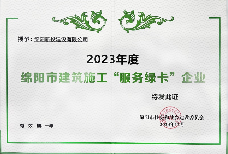 2023年度綿陽市建筑施工“服務(wù)綠卡”企業(yè)